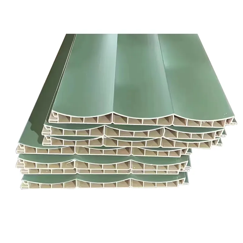 25 cm leveä koristeellinen PVC-seinäpaneeli, eräänlainen PVC-seinäpaneeli, pääasiassa Lähi-idässä, Etelä-Afrikassa ja Etelä-Amerikassa. Se palvelee monia tarkoituksia, mukaan lukien se on ympäristöystävällinen ja valmistettu kierrätetystä muovista ja puhtaasta puusta, termiitin kestävyys, viimeistely, joka näyttää ja tuntuu puulta, ja korkea vedenpitävyys. Ei tarvetta petsaukseen tai maalaamiseen. Pieni vaara saastumista, hajuton, alkalin ja koin kestävä, tahraa ja taipumista hylkivä sekä vettä ja korroosiota kestävä. helppo asentaa ja pysyä ajan tasalla.